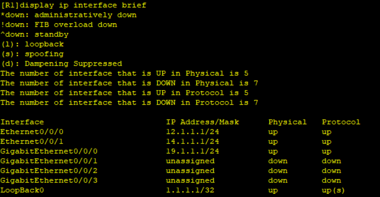 首先看一下AR1的配置,下图为接口IP地址配置: